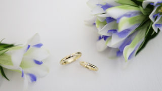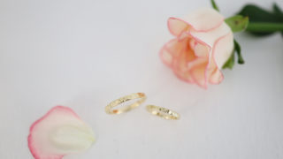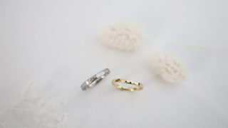 ふたりで手作りした結婚指輪。プラチナ地金からの制作です。お互いの指輪を作り合いました。half round(甲丸)をピカピカに磨きました。前、アトリエイツモのすぐ近くにお住まいだったそうです。「楽しそうでいいなぁ、いつかここで結婚指輪を作りたい」と思っていただいたそうです。