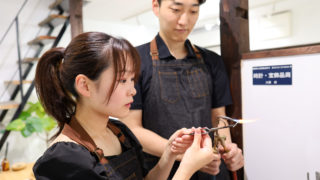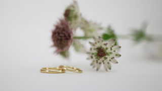 ふたりで手作りした結婚指輪。プラチナ地金からの制作です。oval(平)に鎚目を施しました。鎚目デザインの時は、鎚目を入れながらサイズ調整します。鎚目を金鎚で打つと、サイズが大きくなるので、サイズぴったりの長さよりも少し小さめから作ります。