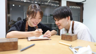 ふたりで手作りした結婚指輪。Waxからの制作です。ひねりが入ったデザインを選ばれました。このデザインの肝はひねり。ここを表現するのが難しいです。左右対称になるようにひねりのラインを書き、ラインが浮き出るように周りを削ります。